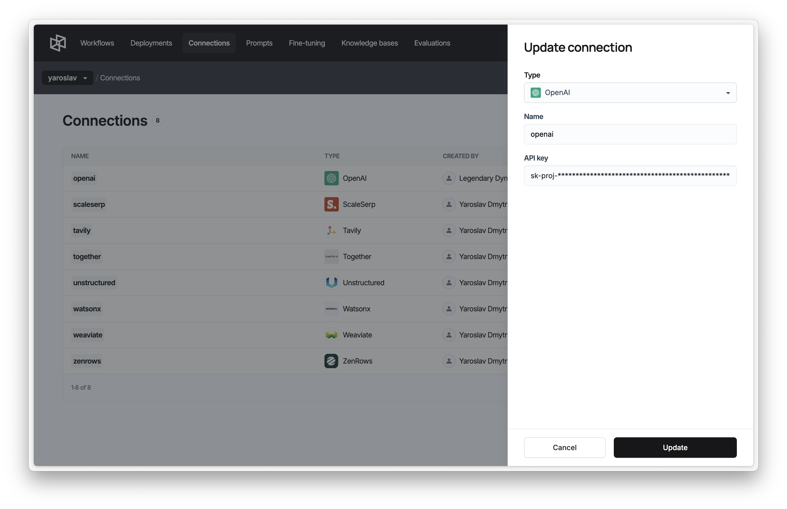 Connections in the Dynamiq platform are reusable configurations that enable seamless integration with external services, APIs, or data providers. By creating and managing connections, users can easily configure integrations once and reuse them across multiple workflows and other platform features. This approach minimizes redundancy and ensures a consistent setup for interacting with external resources.