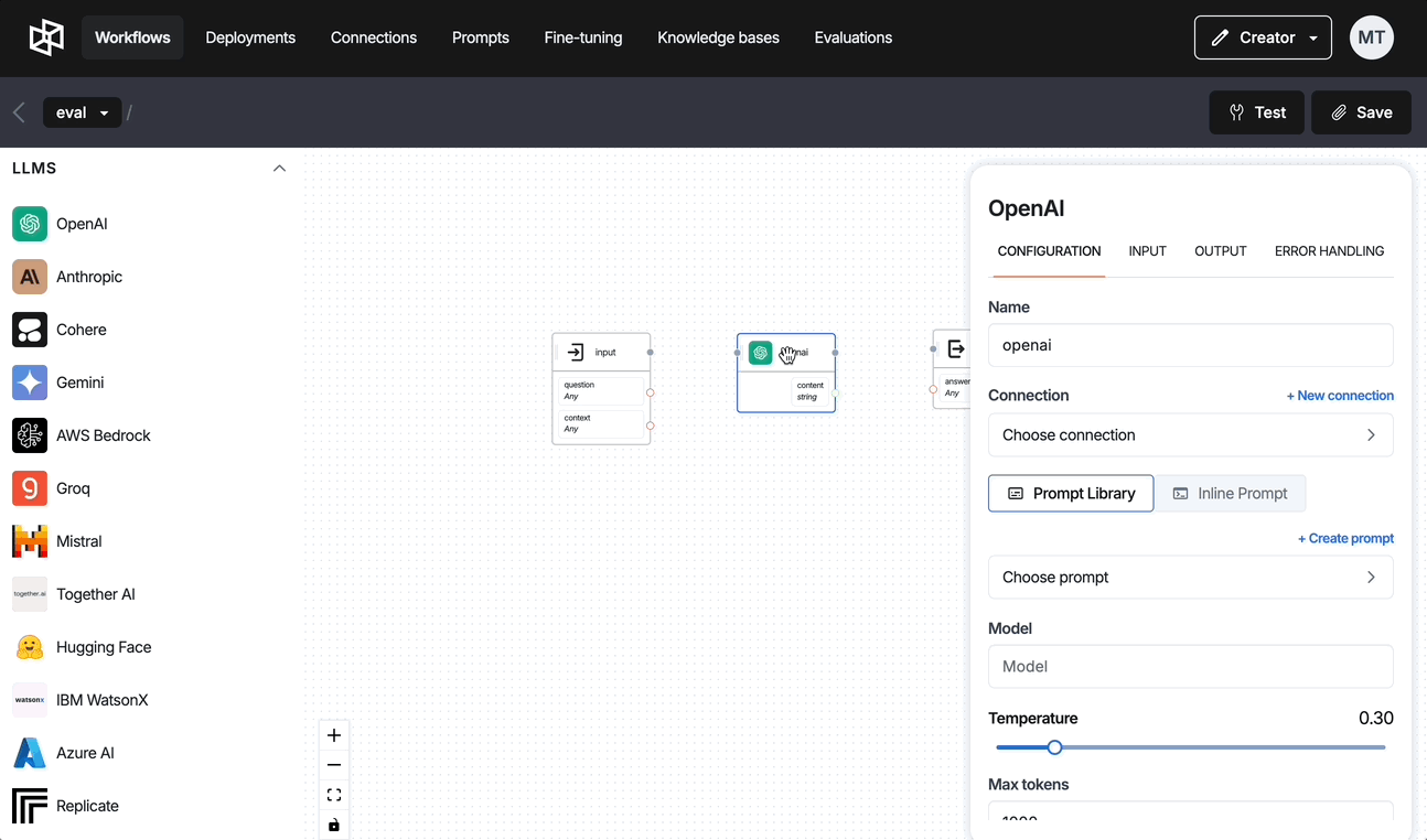 4. **Deploy Workflows**: Once configured, deploy the workflows to start generating answers based on the provided prompts.