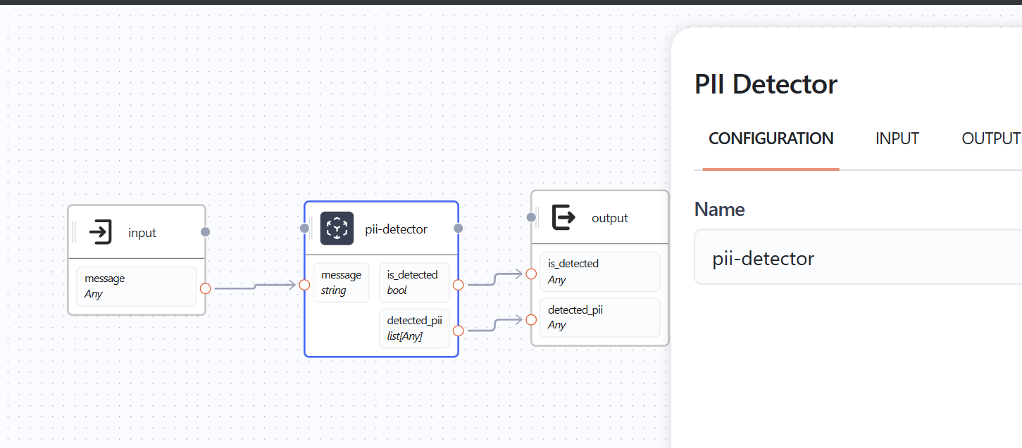In case of detecting PII, the node will return a flag indicating detection and a list of detected PII types: